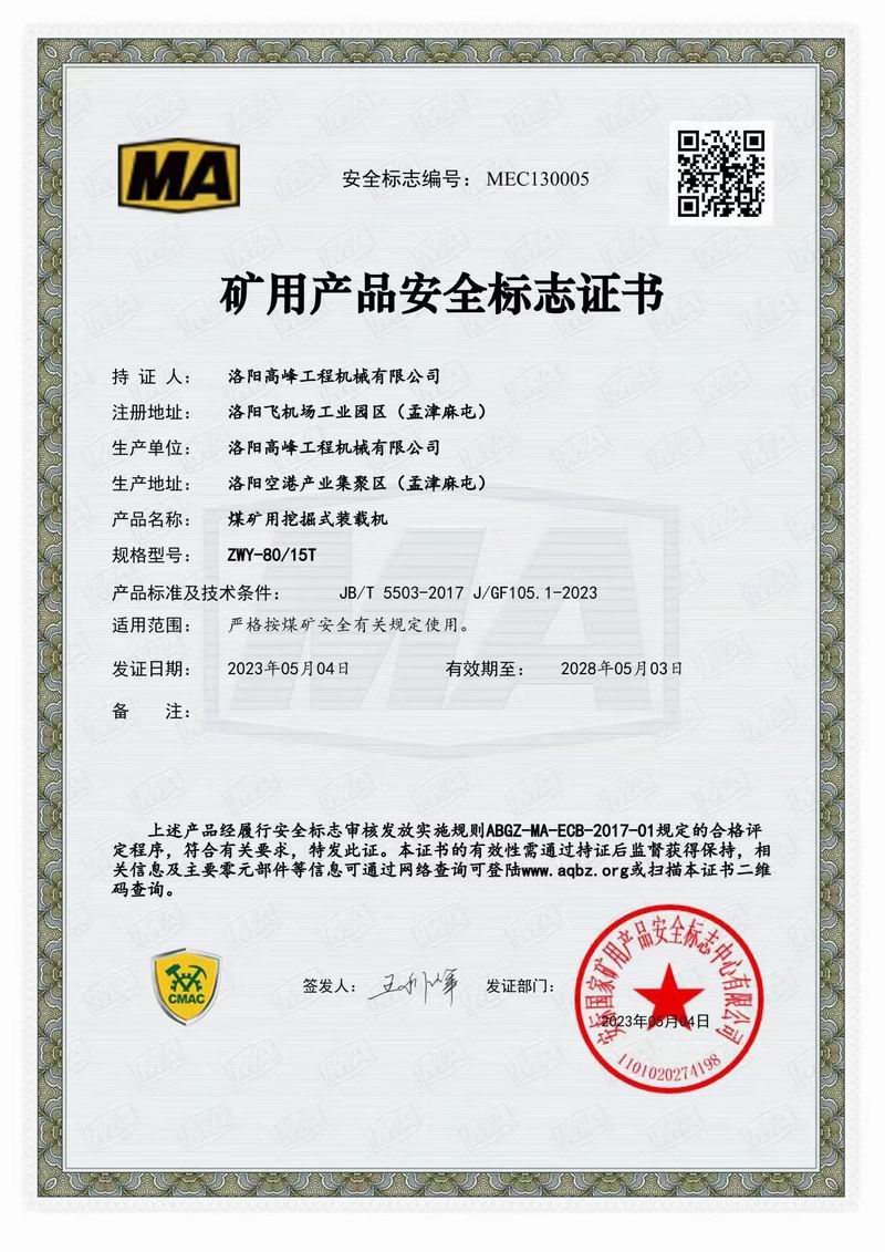 礦用產品安全標志證書